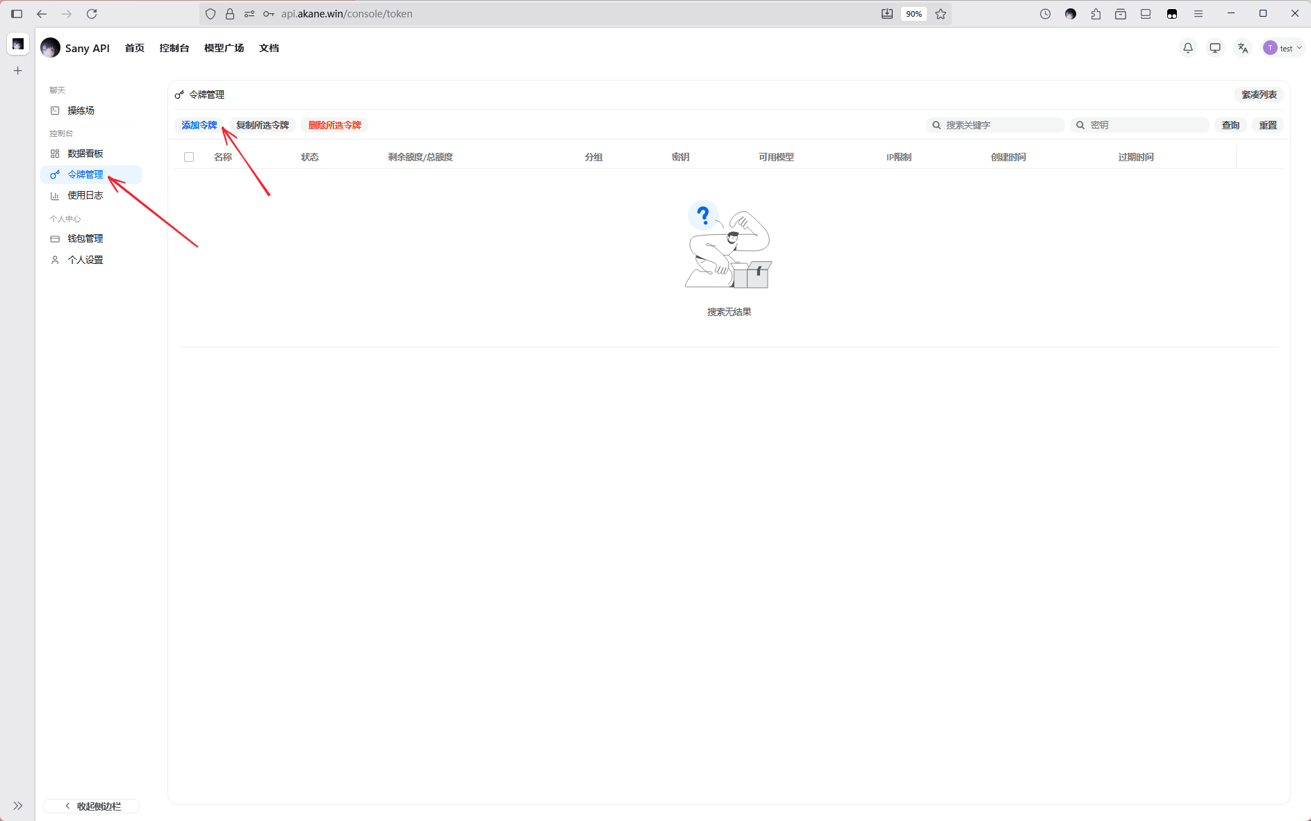 点击添加令牌