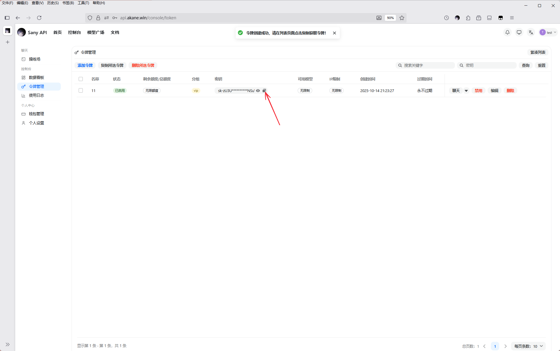 点击此处复制令牌密钥